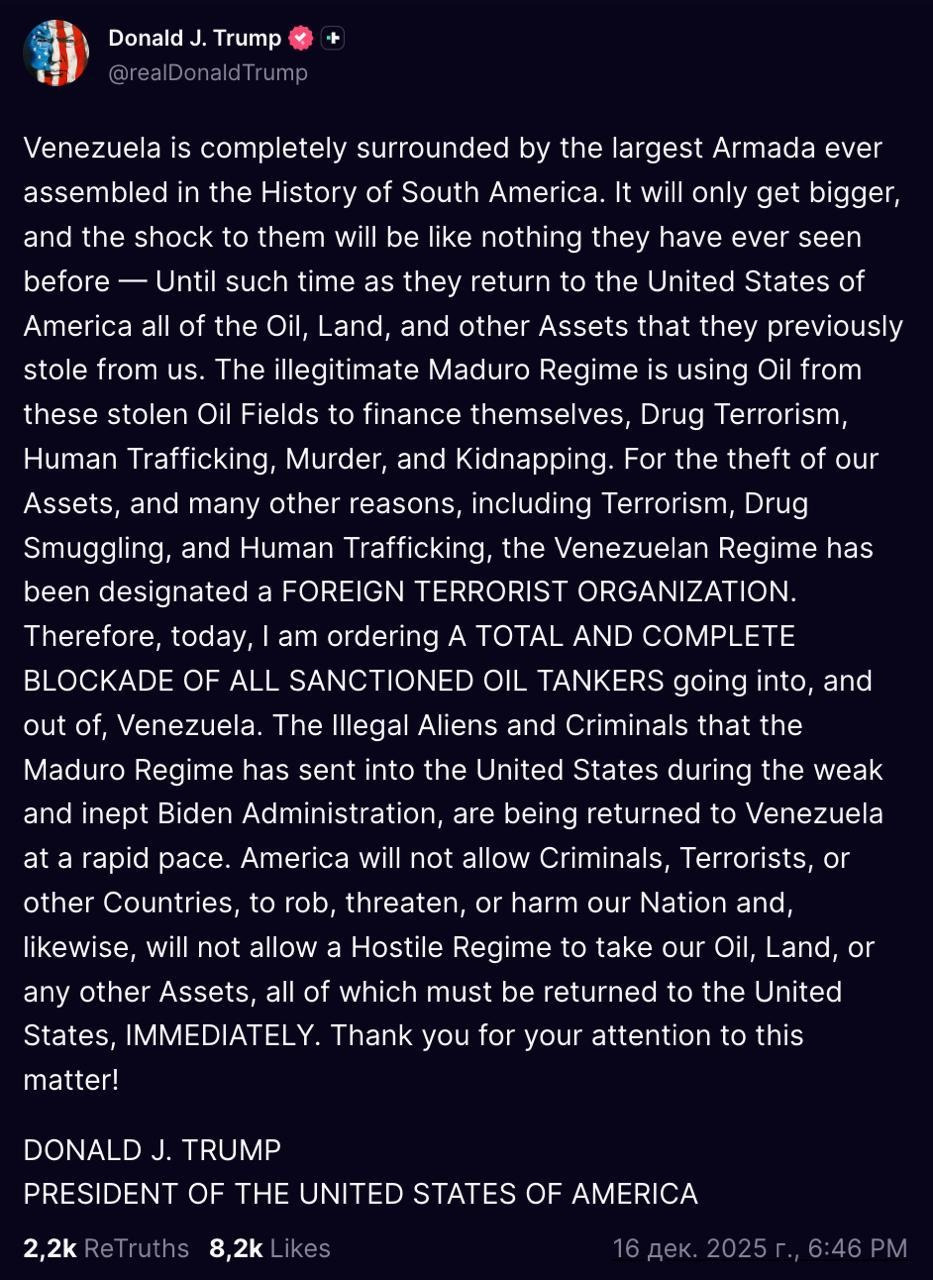 | 트럼프의 ‘베네수엘라 유조선 봉쇄’ 발언이 위험한 이유: 국제법·군사현실·석유전쟁의 계산서 (0) | 2025.12.20 |